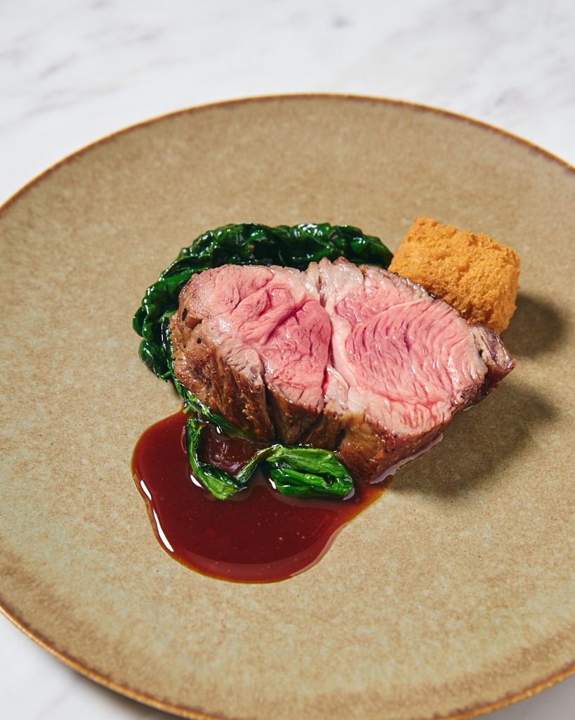 そしてもう一品は、今回のメインディッシュ「仔羊のロースト 黒キャベツとひよこ豆」。オーストラリア産仔羊の肩ロースは、柔らかく赤身と脂身のバランスが抜群。付け合わせは、ひよこ豆のフリットと黒キャベツです。